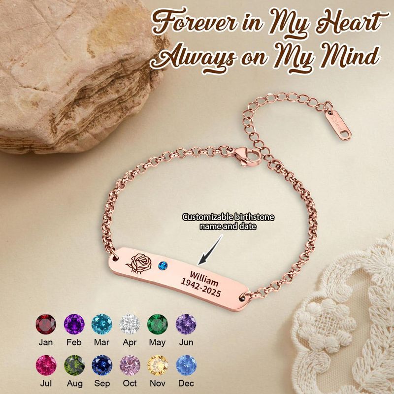 - 1 x Personalized Name Date and Birthstone Memorial Bracelet